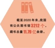 數(shù)據(jù)統(tǒng)計,截至2020年末,我國有公共圖書館3212個,藏書總量11.79億余冊,實(shí)際使用房屋建筑面積1785.77萬平方米,平均每萬人公共圖書館建筑面積為126.49平方米。