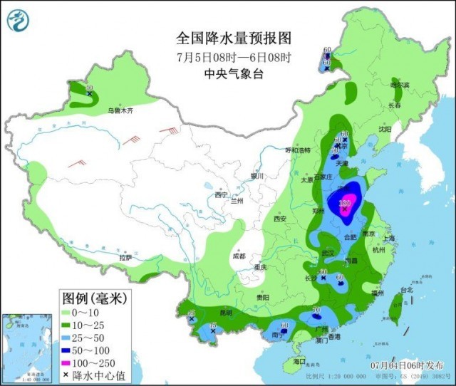 明天,內(nèi)蒙古中東部、京津冀、黃淮中東部、西南地區(qū)南部、江淮大部、江漢東部、江南中東部、華南大部、臺灣島等地的部分地區(qū)有中到大雨,其中,山東中南部、河南東部、安徽北部、江蘇北部、京津冀、廣東北部等地的部分地區(qū)有暴雨,山東南部、安徽北部、江蘇北部、河南東部等地局地大暴雨(100~180毫米)。