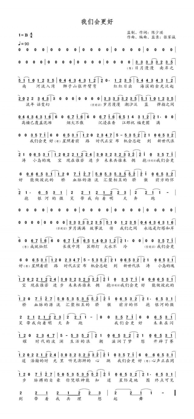 中央廣播電視總臺策劃制作的慶祝香港回歸祖國25周年主題歌曲《我們會更好》普通話粵語融合版本、粵語版本近日重磅發(fā)布上線。目前話題閱讀1.3億,播放超1300萬。香港著名音樂人陳少琪任制作人及作詞,張家誠作曲,香港歌手容祖兒、陳偉霆和內(nèi)地歌手譚維維、孫楠聯(lián)袂演唱。