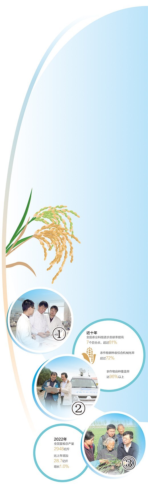 青紗帳里,玉米行行挺拔;汪汪水田,晚稻株株青綠……國(guó)家統(tǒng)計(jì)局?jǐn)?shù)據(jù)顯示:2022年全國(guó)夏糧總產(chǎn)量2948億斤,比上年增加28.7億斤,增長(zhǎng)1.0%。這離不開(kāi)廣大農(nóng)業(yè)科學(xué)家的持續(xù)努力。長(zhǎng)期以來(lái),廣大農(nóng)業(yè)科學(xué)家圍繞農(nóng)業(yè)農(nóng)村發(fā)展,把論文寫(xiě)在大地上、把成果送進(jìn)億萬(wàn)農(nóng)民家,為實(shí)現(xiàn)農(nóng)業(yè)穩(wěn)產(chǎn)增產(chǎn)、促進(jìn)農(nóng)民持續(xù)增收、打贏(yíng)脫貧攻堅(jiān)戰(zhàn)和推動(dòng)鄉(xiāng)村振興作出重要貢獻(xiàn)。本版推出特別策劃,為您講述三位農(nóng)業(yè)科學(xué)家的故事。