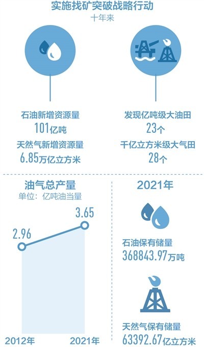 黨的十八大以來(lái),我國(guó)油氣勘探開(kāi)發(fā)力度不斷加大,高質(zhì)量發(fā)展體系日趨完善。油氣總產(chǎn)量由2012年的2.96億噸油當(dāng)量增長(zhǎng)至2021年的3.65億噸油當(dāng)量。今年前9月,原油產(chǎn)量達(dá)15375萬(wàn)噸,同比增長(zhǎng)3.0%;天然氣產(chǎn)量達(dá)1601億立方米,同比增長(zhǎng)5.4%。