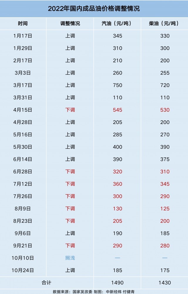 中新經(jīng)緯梳理,今年以來,國(guó)內(nèi)成品油價(jià)格已經(jīng)進(jìn)行了20輪調(diào)整,呈現(xiàn)“十二漲七跌一擱淺”格局,汽油價(jià)格累計(jì)上調(diào)1490元/噸,柴油價(jià)格累計(jì)上調(diào)1430元/噸。