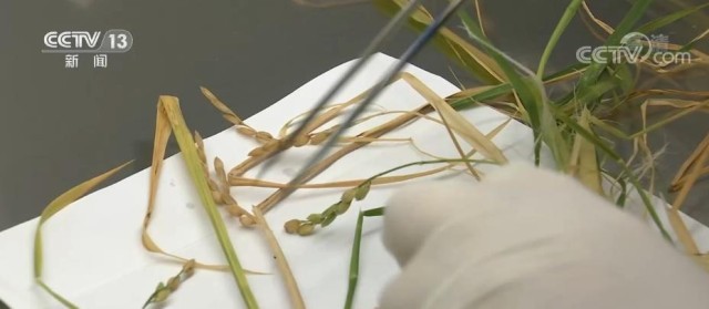 總臺央視記者 張春玲:在中科院空間應用中心,實驗人員正在對從太空返回的植物種子進行相關(guān)處理。他們要及時的進行分解和化學固化處理,在他們面前所擺放著這次太空中三粒植物種子收獲的多株稻穗,可謂是碩果累累。