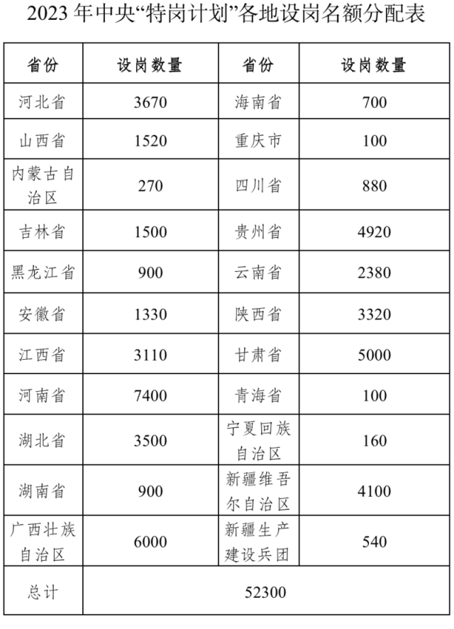 《通知》明確,2023年,中央“特崗計劃”仍面向中西部省份實施,重點向原“三區(qū)三州”、國家鄉(xiāng)村振興重點幫扶縣、少數(shù)民族地區(qū)等地區(qū)傾斜;重點為鄉(xiāng)村學校補充特崗教師,引導和鼓勵高校畢業(yè)生到鄉(xiāng)村學校任教;持續(xù)優(yōu)化教師隊伍結構,進一步加強道德與法治、體育與健康、外語、科學、勞動、藝術、信息科技、心理健康、特殊教育等緊缺薄弱學科教師的補充。