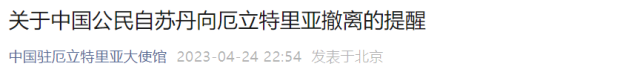 據(jù)中國駐厄立特里亞大使館4月24日消息,近日,蘇丹安全形勢急劇惡化,陸續(xù)有中國公民自行撤離,擬從蘇丹——厄邊境入境厄立特里亞。中國駐厄立特里亞使館密切關(guān)注、積極協(xié)助中國公民撤離蘇丹、入境厄。