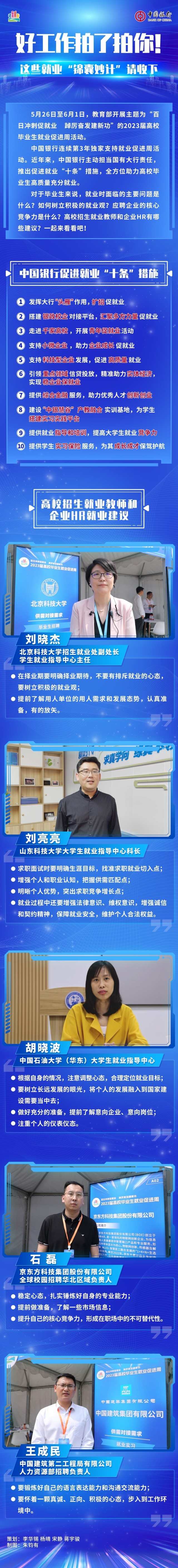 5月26日至6月1日,教育部開(kāi)展主題為“百日沖刺促就業(yè)距厲奮發(fā)建新功”的2023屆高校畢業(yè)生就業(yè)促進(jìn)周活動(dòng)。中國(guó)銀行連續(xù)第3年獨(dú)家支持就業(yè)促進(jìn)周活動(dòng)。近年來(lái),中國(guó)銀行主動(dòng)擔(dān)當(dāng)國(guó)有大行責(zé)任推出促進(jìn)就業(yè)“十條”措施,全方位助力高校畢業(yè)生高質(zhì)量充分就業(yè)。對(duì)于畢業(yè)生來(lái)說(shuō),就業(yè)時(shí)面臨的主要問(wèn)題是什么? 如何樹(shù)立積極的就業(yè)觀? 應(yīng)聘企業(yè)的核心競(jìng)爭(zhēng)力是什么? 高校招生就業(yè)教師和企業(yè)HR有哪些建議? 一起來(lái)看看吧?。ㄖ袊?guó)青年網(wǎng)記者 李華錫 楊晴 宋靜 蔣宇駿 朱鈞有)