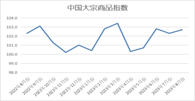 2023年8月份中國(guó)大宗商品指數(shù)(CBMI)為102.7%
