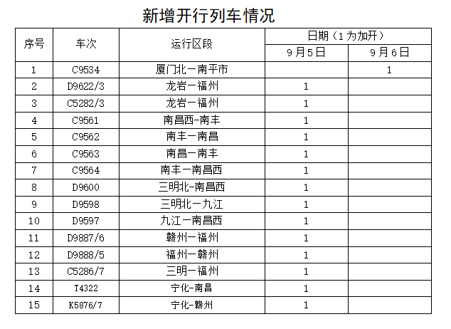 據(jù)中央氣象臺消息,今年第11號臺風“??庇诮裉欤?月5日)早晨5點20分前后在福建省東山縣沿海登陸,福建東部部分地區(qū)將有大暴雨,并伴有短時強降水,局地有雷暴大風等強對流天氣。為防范臺風影響,保障鐵路運輸安全,中國鐵路南昌局集團有限公司繼續(xù)調(diào)整部分旅客列車運行方案,停運管內(nèi)途經(jīng)杭深線福州南至詔安,龍漳線龍巖至漳州,昌福線三明北至福州等區(qū)段旅客列車。同時,加開15趟旅客列車,方便旅客出行。