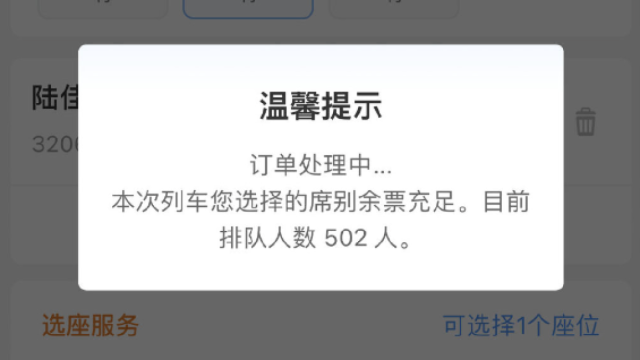 余票充足仍需排隊是由于同一時間點下訂單的用戶過多。12306開啟售票時間固定,不會針對第三方軟件提前售票。