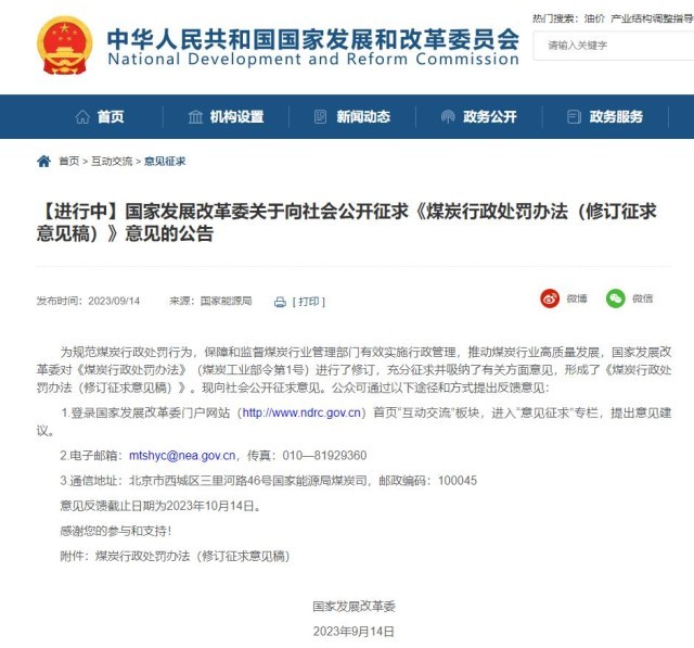 國家發(fā)改委進(jìn)一步規(guī)范煤炭行政處罰行為