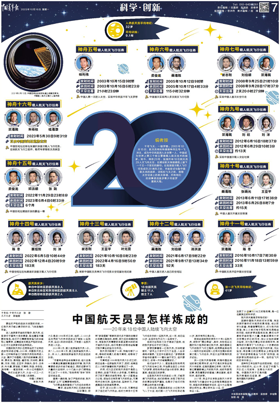 自神舟五號(hào)發(fā)射升空的那刻起,已過去20年的時(shí)光。這20年,見證了中國飛天隊(duì)伍從無到有、發(fā)展壯大的歷程。中國航天員不僅是中國航天輝煌的見證者,更是中國航天夢想的踐行者。