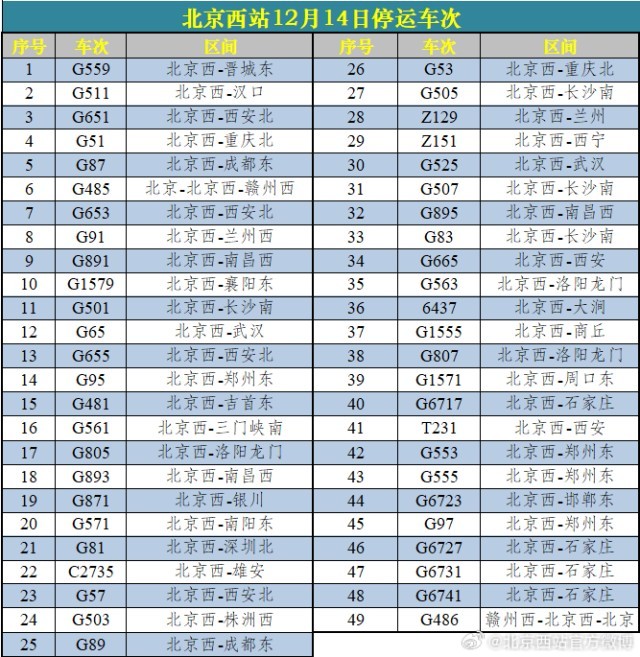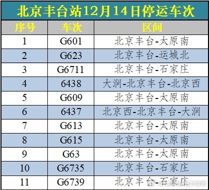 受降雪影響 北京西站、北京豐臺(tái)站12月14日60趟列車停運(yùn)