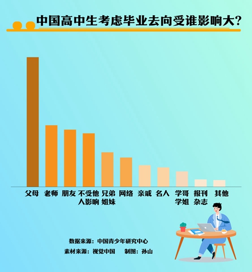 孫宏艷:首先,學(xué)校是職業(yè)生涯規(guī)劃教育的主要部門(mén),學(xué)校把職業(yè)生涯規(guī)劃教育搞好了,學(xué)生能對(duì)自己和職業(yè)有準(zhǔn)確的認(rèn)知和定位,他們自然會(huì)選擇合適的職業(yè)和工作地。從這次的調(diào)查數(shù)據(jù)看,中國(guó)高中生已比過(guò)去更理性了,就業(yè)地首選已從北上廣這樣的國(guó)際大城市到所在地中心城市了。未來(lái),隨著我國(guó)鄉(xiāng)村振興等政策的推進(jìn)和城市的發(fā)展,青年也許會(huì)更愿意到所在地縣鎮(zhèn)村等基層去工作。這不僅依賴(lài)于政策和城市的發(fā)展,更依賴(lài)于青年對(duì)自我和職業(yè)的準(zhǔn)確定位。