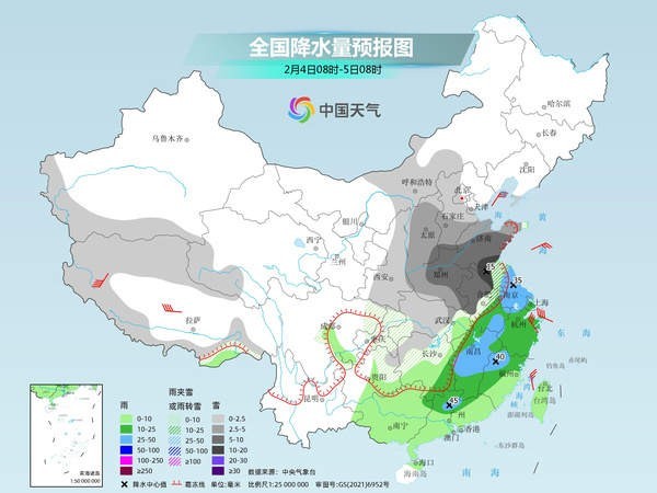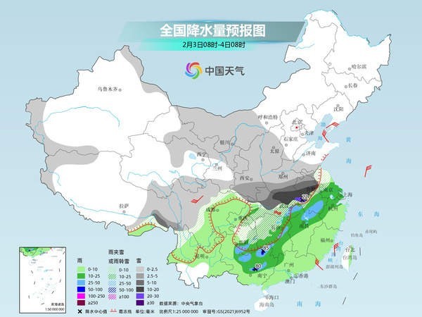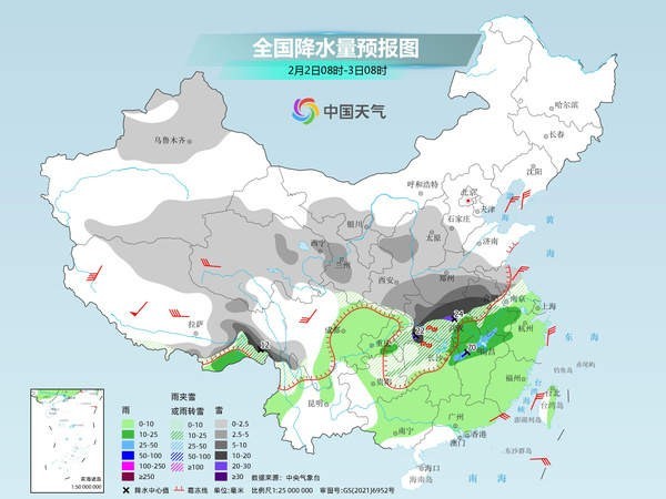 未來(lái)三天(2月2日至4日),中東部大范圍雨雪冰凍天氣過(guò)程進(jìn)入鼎盛時(shí)段,江漢至黃淮一帶將遭遇強(qiáng)降雪,局地或現(xiàn)大暴雪,江南、華南局地有暴雨,并可能出現(xiàn)強(qiáng)對(duì)流天氣。在冷空氣和雨雪天氣共同影響下,中東部多地濕冷感明顯。春運(yùn)高峰期將至,公眾需注意出行安全,做好防寒保暖措施。