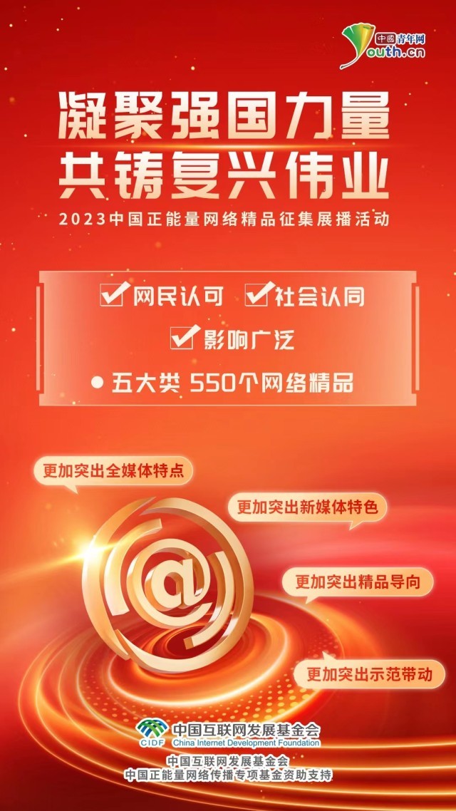 中國青年網(wǎng)北京2月27日電(記者 劉尚君)凝聚強(qiáng)國力量,共鑄復(fù)興偉業(yè)。由中央網(wǎng)信辦主辦的2023中國正能量網(wǎng)絡(luò)精品征集展播活動今天正式啟動網(wǎng)絡(luò)展播投票。經(jīng)過初選,1100件作品從征集報送作品中脫穎而出入圍終選。據(jù)悉,今年的活動將通過初選、網(wǎng)絡(luò)投票、終選等環(huán)節(jié),最終選出五大類、550個網(wǎng)絡(luò)精品。