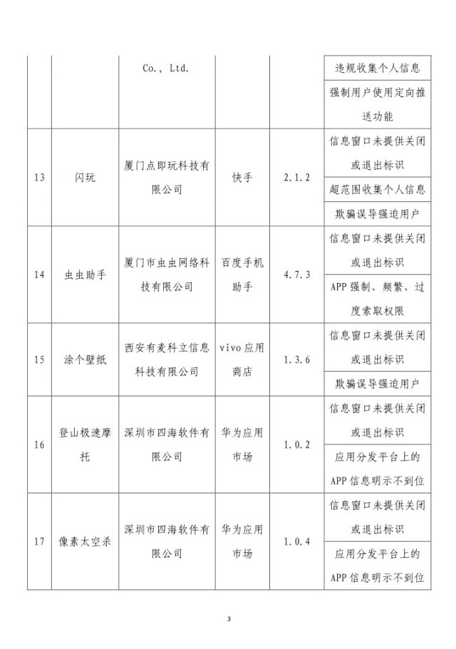 央視網(wǎng)消息:據(jù)工業(yè)和信息化部網(wǎng)站消息,工業(yè)和信息化部信息通信管理局3月14日公布《關(guān)于侵害用戶權(quán)益行為的APP(SDK)通報(2024年第2批,總第37批)》: