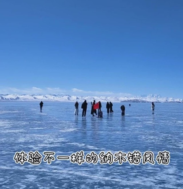 當前,納木錯正值限定“藍冰季”,一望無際的藍色冰面,遼闊而寧靜。來自全國各地的游客來到納木錯享受別樣的冰雪風情。