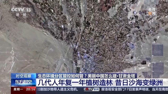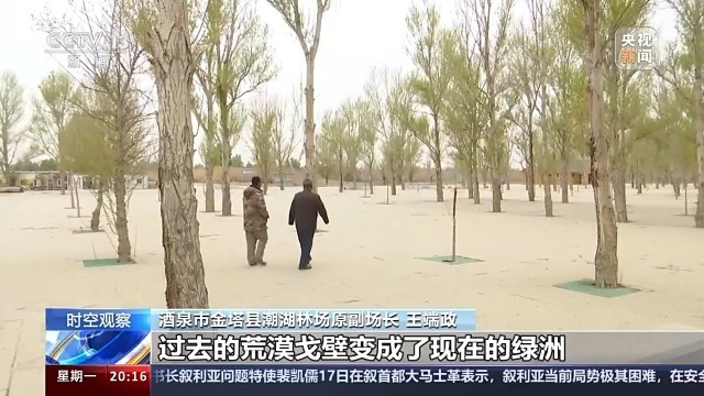 甘肅酒泉金塔縣潮湖林場(chǎng)副場(chǎng)長(zhǎng) 王端政:過(guò)去的沙進(jìn)人退變成了現(xiàn)在的人進(jìn)沙退,過(guò)去的荒漠戈壁變成了現(xiàn)在的綠洲,現(xiàn)在金塔的生態(tài)環(huán)境得到了很大的改善。