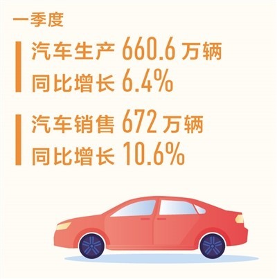 一季度汽車(chē)銷(xiāo)量同比增長(zhǎng)10.6% 新能源汽車(chē)國(guó)內(nèi)銷(xiāo)量同比增長(zhǎng)33.3%