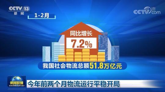 央視網(wǎng)消息(新聞聯(lián)播):中國物流與采購聯(lián)合會今天(3月24日)公布的數(shù)據(jù)顯示,今年1—2月,我國物流運行總體平穩(wěn),社會物流總額增長較快。今年1—2月,我國社會物流總額51.8萬億元,同比增長7.2%,物流總額增速延續(xù)回升態(tài)勢,同時明顯高于疫情前2019年水平。從結(jié)構(gòu)看,擴內(nèi)需、促消費政策效應持續(xù)顯現(xiàn),工業(yè)、消費物流需求保持較快增長。1—2月,工業(yè)品物流總額同比增長7.5%,較2020—2021年兩年平均增速加快1.4個百分點。消費品制造業(yè)物流需求同比增長9.7%,較2020—2021年兩年平均增速加快5.2個百分點。另外,進口物流需求持續(xù)回落,但降幅在收窄,物流在促進產(chǎn)業(yè)鏈、供應鏈穩(wěn)定運行中的作用繼續(xù)凸顯。