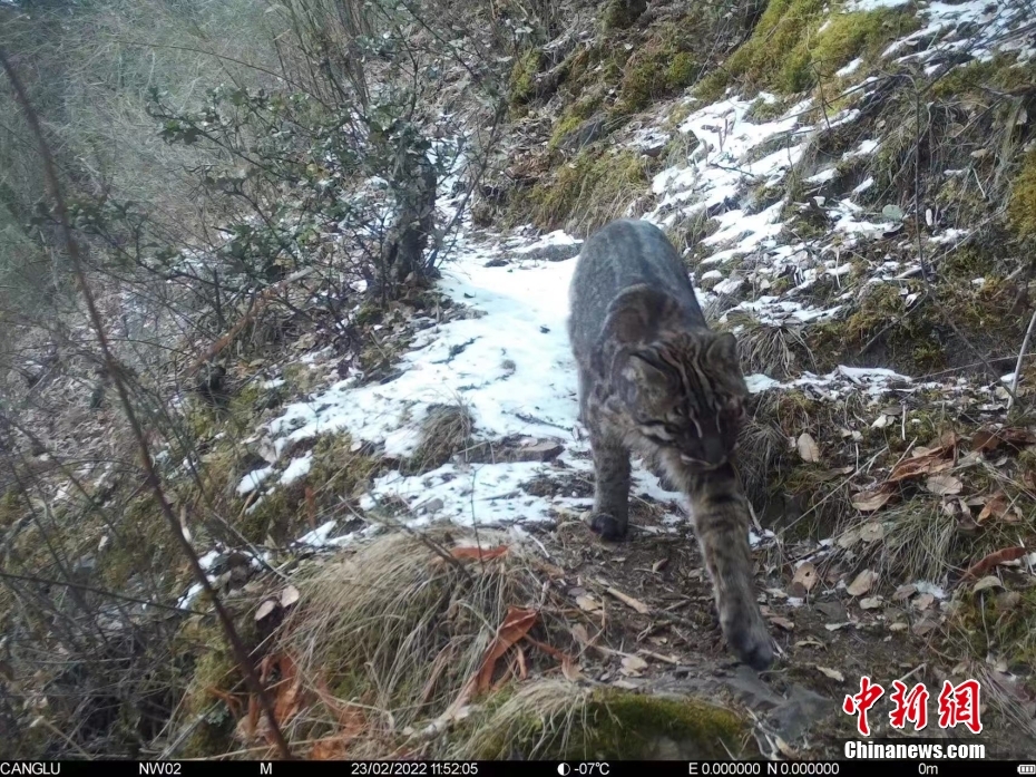 5月17日,記者從西藏自治區(qū)那曲市林業(yè)和草原局獲悉,在該局和山水自然保護(hù)中心聯(lián)合開展的那曲生物多樣性調(diào)查項(xiàng)目中,首次在那曲市嘉黎縣記錄到了國家一級(jí)保護(hù)動(dòng)物金貓的活動(dòng)影像,填補(bǔ)了那曲市的金貓分布空白,并且4300米也是迄今為止金貓?jiān)谌虻淖罡叻植己0斡涗?。圖為2022年2月紅外相機(jī)拍攝到的金貓影像。 中新社發(fā) 山水自然保護(hù)中心 供圖
