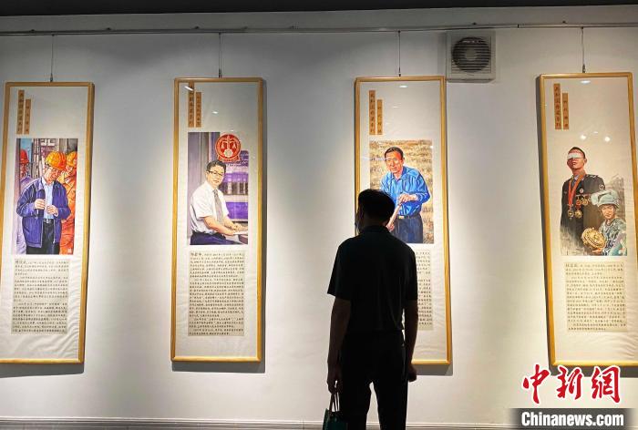 中新網(wǎng)揚(yáng)州6月30日電 (記者 崔佳明)30日,“共和國脊梁”系列人物畫展在揚(yáng)州江都開展,這是當(dāng)?shù)乩纤囆g(shù)家周伐耕以耄耋之軀,慷慨之情,歷時(shí)兩年多,潛心創(chuàng)作的50幅彩墨畫“共和國脊梁”系列人物畫。