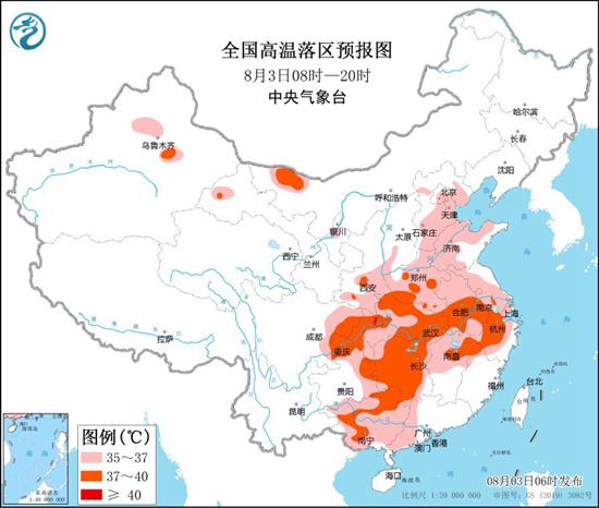 其中今天白天,北京平原地區(qū)、天津、河北、河南、山東、陜西南部、湖北、安徽、江蘇、上海、浙江、江西中北部、湖南、貴州東部和南部、重慶、四川東部、廣東西部、廣西等地有35℃以上高溫天氣,其中,河南中南部、安徽中南部、湖北、浙江中西部、江西北部、湖南、重慶、四川東部、廣西北部和西部等地部分地區(qū)最高氣溫37~39℃,重慶局地可達40℃以上。中央氣象臺今早繼續(xù)發(fā)布高溫黃色預警。