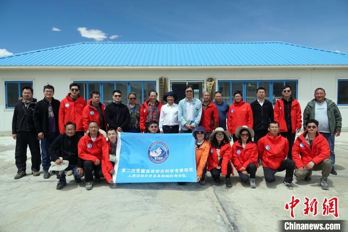 第二次青藏科考“人類活動(dòng)歷史及其影響”分隊(duì)到訪中科院青藏高原所阿里站合影?!≈行律缬浾?孫自法 攝