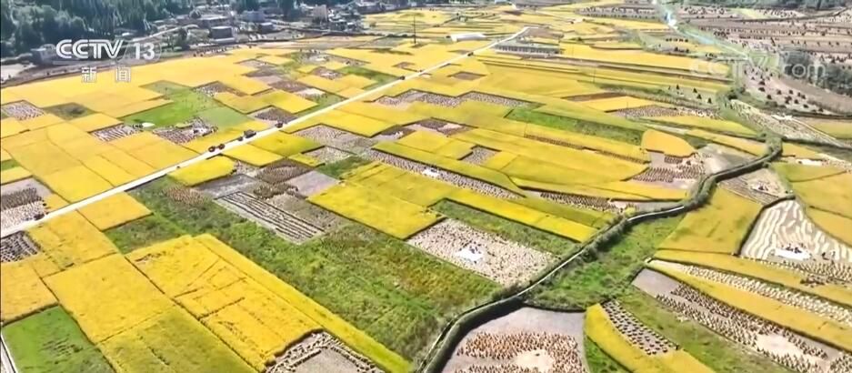 央視網(wǎng)消息:這幾天,云南曲靖富源縣的水稻迎來豐收,村民們忙著收割,這些曾經(jīng)閑置的土地如今仿佛鋪上了“金黃地毯”。