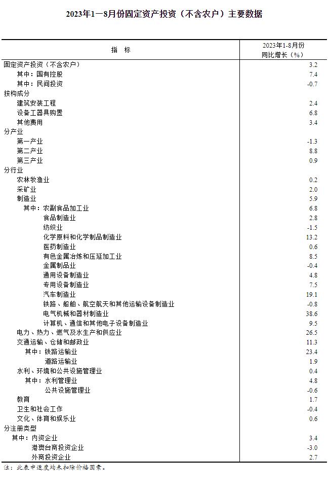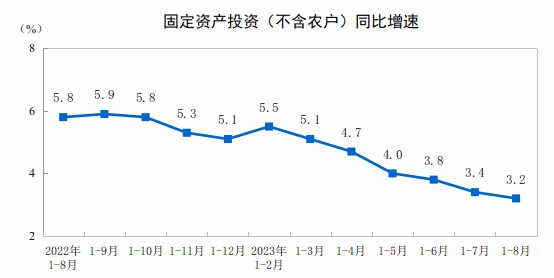 國家統(tǒng)計(jì)局:2023年1—8月份全國固定資產(chǎn)投資增長3.2%