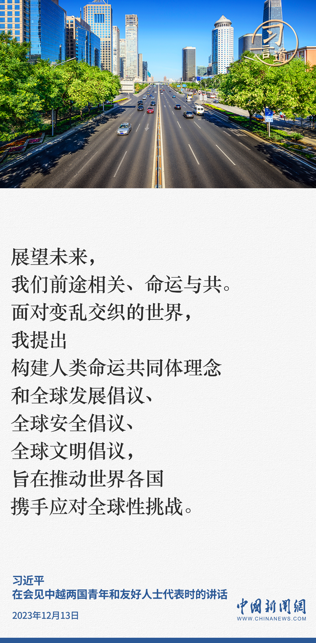當(dāng)?shù)貢r間12月13日下午,中共中央總書記、國家主席習(xí)近平和夫人彭麗媛在河內(nèi)同越共中央總書記阮富仲夫婦共同會見中越兩國青年和友好人士代表。習(xí)近平指出——