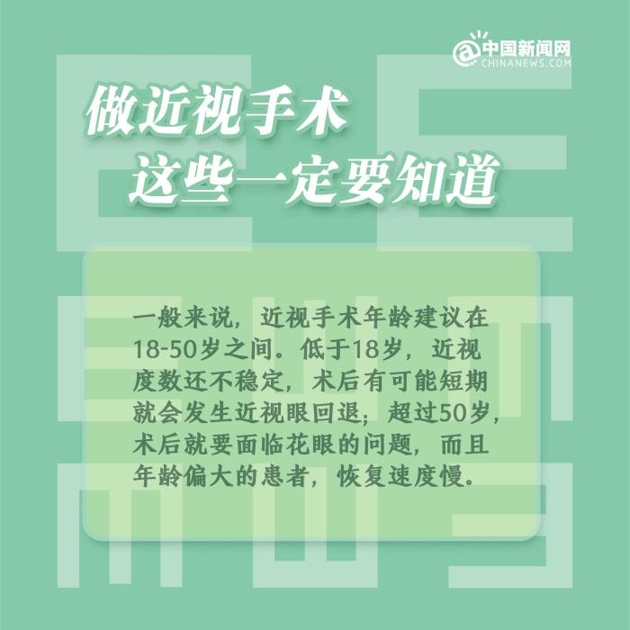 中新網(wǎng)2月4日電 ①近視手術,分為角膜激光手術和眼內(nèi)鏡植入手術;②一般來說,近視手術的時間建議在18-50歲之間;③術后1個月內(nèi),避免異物進入眼睛,不要揉眼和劇烈運動;④術后仍應注意用眼衛(wèi)生、飲食習慣、生活習慣等,要經(jīng)常放眼遠眺。