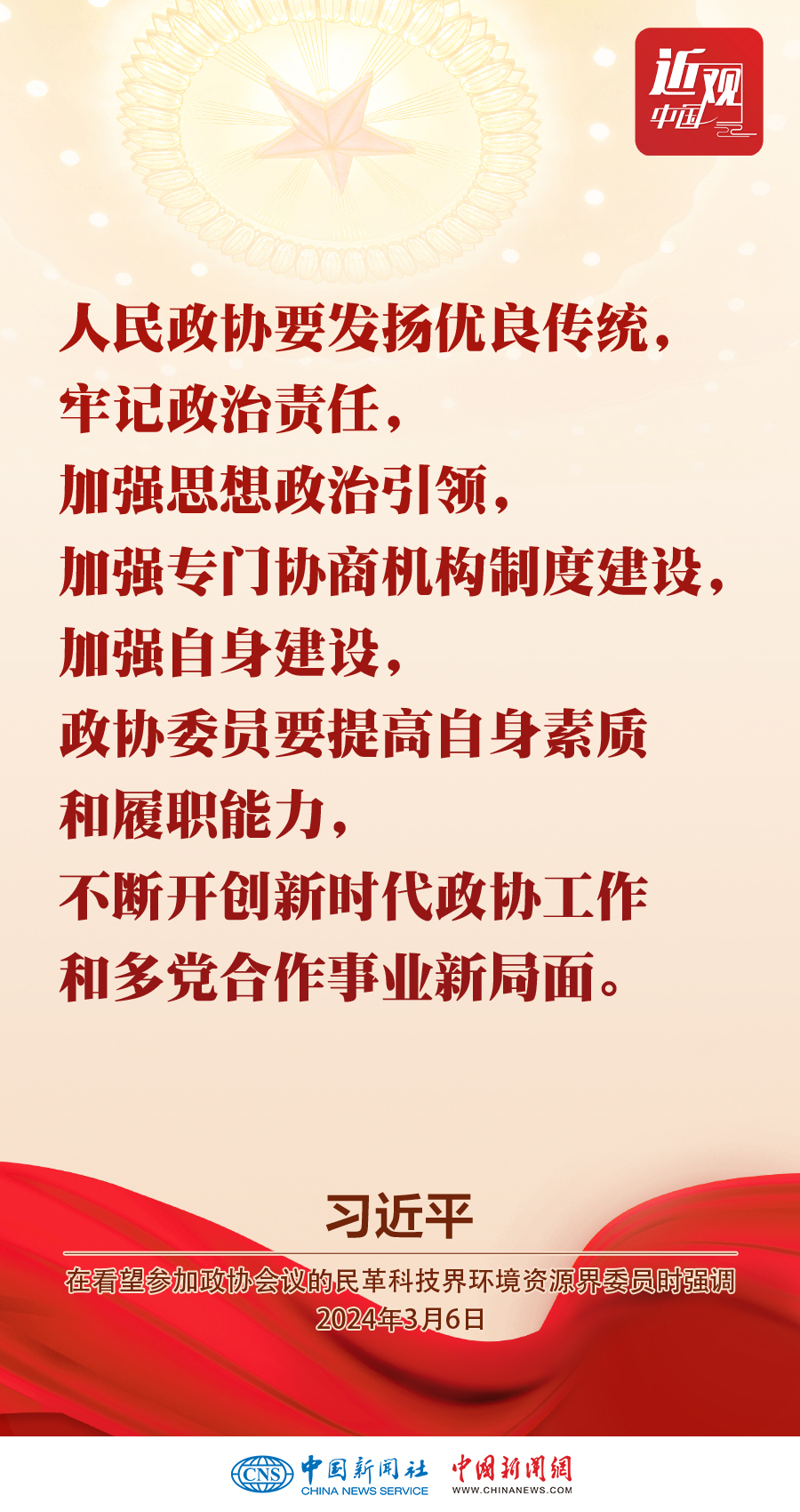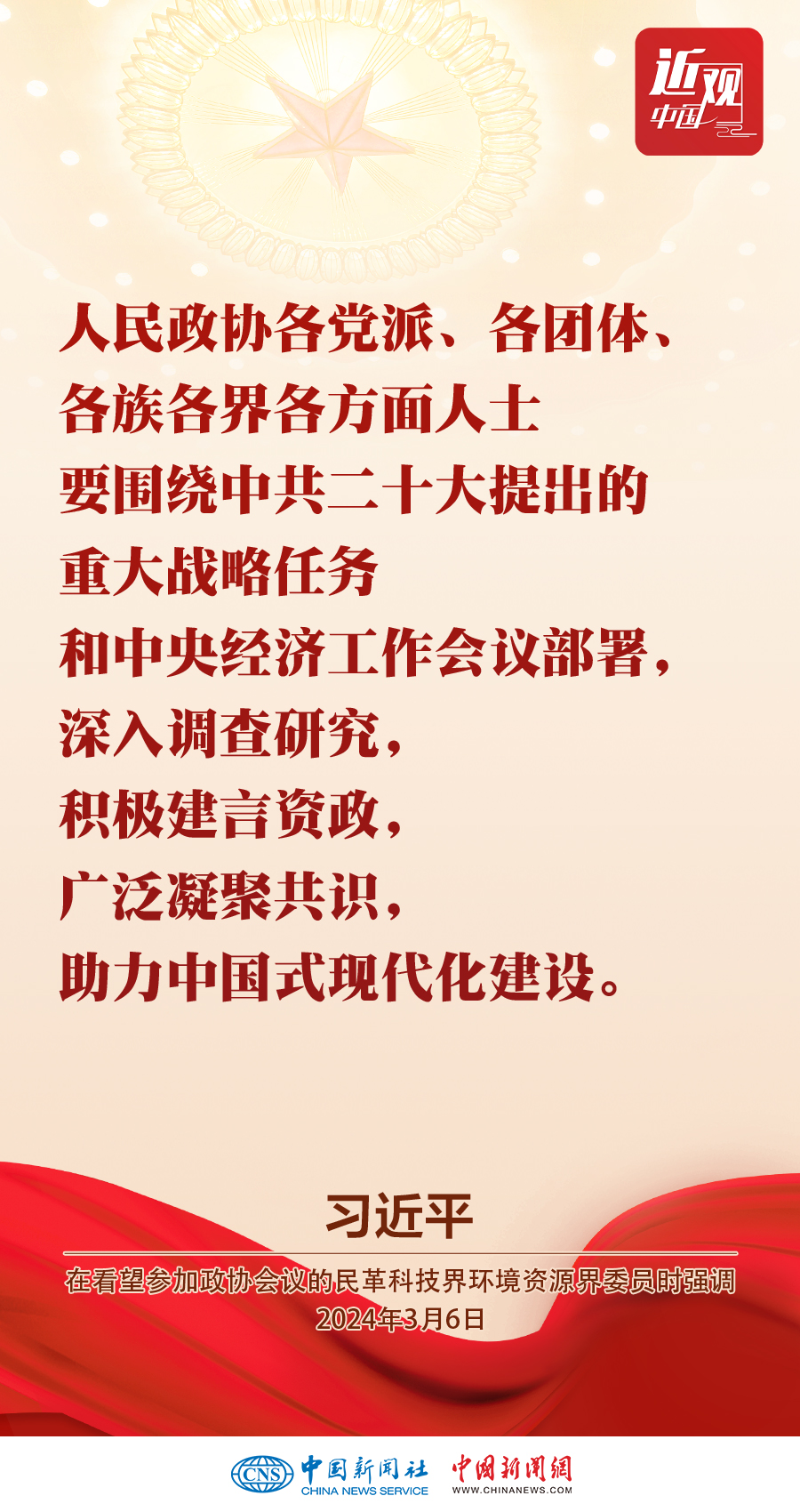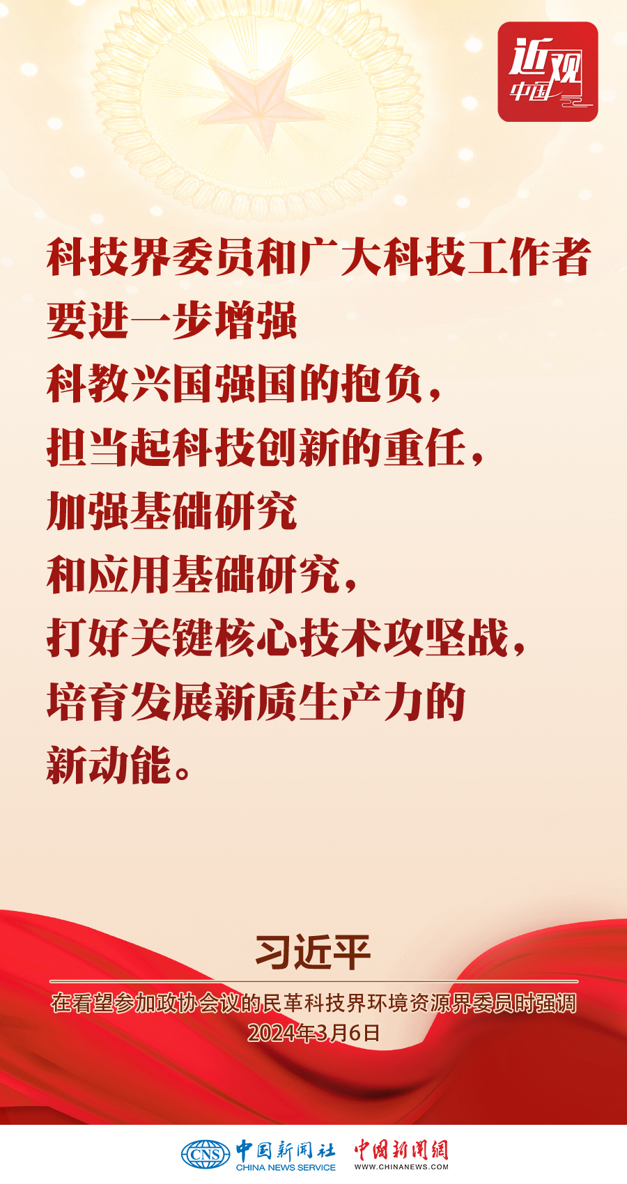 3月6日,中共中央總書記、國家主席、中央軍委主席習近平看望參加全國政協(xié)十四屆二次會議的民革、科技界、環(huán)境資源界委員,并參加聯(lián)組會,聽取意見和建議。他強調(diào)——