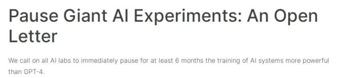 呼吁暫停巨型AI訓練的公開信。圖片來源:“未來生命研究所”網(wǎng)站