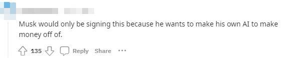 但也有人懷疑馬斯克的動機,“馬斯克之所以會簽署它,因是為他想用自己的人工智能來賺錢?!?/p>