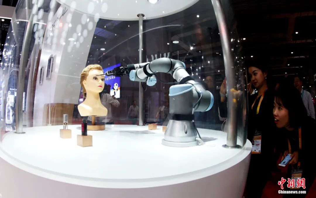 進(jìn)博會上,展商正在展示機器人化妝技術(shù)。湯彥俊攝