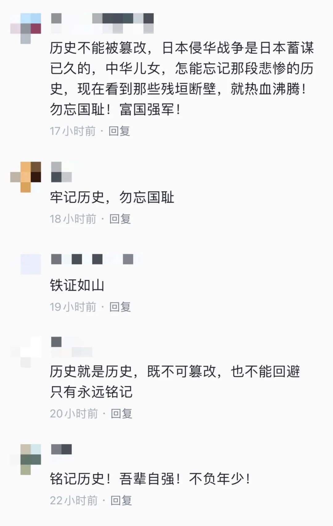 歷史從未遺忘!總臺央視新聞播發(fā)兩條短視頻《日本侵華獨家影像披露丨“七七事變”后的宛平城影像 揭露日軍宣傳謊言》《日本侵華獨家影像披露②丨清河車站運兵視頻 揭露日軍侵略野心》后,各大新媒體均在首頁四條置頂轉(zhuǎn)發(fā)。網(wǎng)民紛紛留言:“國恥不能忘,復(fù)興在今朝!”“忘記歷史就是背叛”“警惕日本軍國主義陰魂!”……
