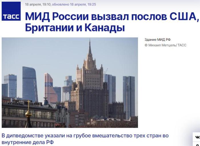 據(jù)報(bào)道,俄外交部表示,“由于粗暴干涉俄羅斯內(nèi)部事務(wù)和從事不符合外交地位的活動,美國、英國和加拿大的大使被俄外交部召見?!?/p>