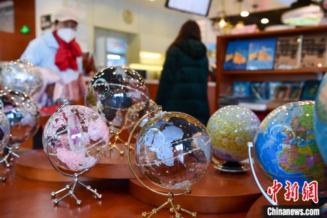 市民在北京一家地圖主題書(shū)店選購(gòu)地球儀。田雨昊 攝