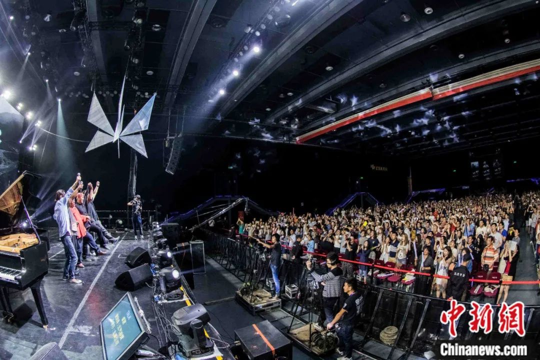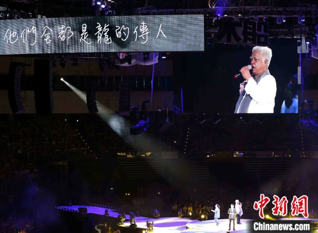 2015年6月,“民歌40:再唱一段思想起”演唱會在臺北小巨蛋舉行。包括齊豫、李宗盛、潘越云在內(nèi)的幾十位知名歌手齊聚一堂,共同紀(jì)念臺灣民歌運(yùn)動興起40周年。圖為胡德夫等人合唱《龍的傳人》。鄭巧 攝