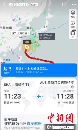 “飛常準(zhǔn)”APP顯示,上午11時(shí)23分,特斯拉CEO馬斯克的私人飛機(jī)離開(kāi)上海虹橋機(jī)場(chǎng)。 浦帆 攝