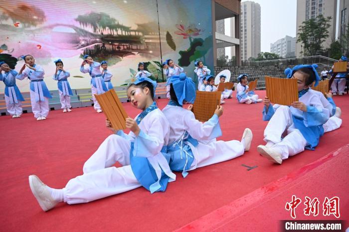 資料圖:學(xué)生們正在進(jìn)行《弟子規(guī)》經(jīng)典誦讀表演。 陳超 攝