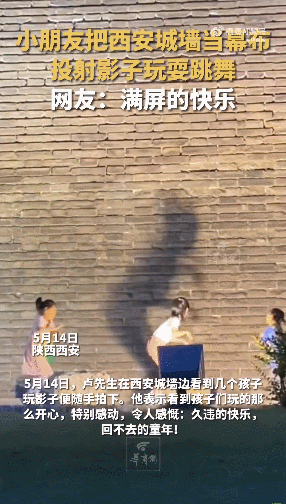 3個小朋友用燈把影子投射在城墻