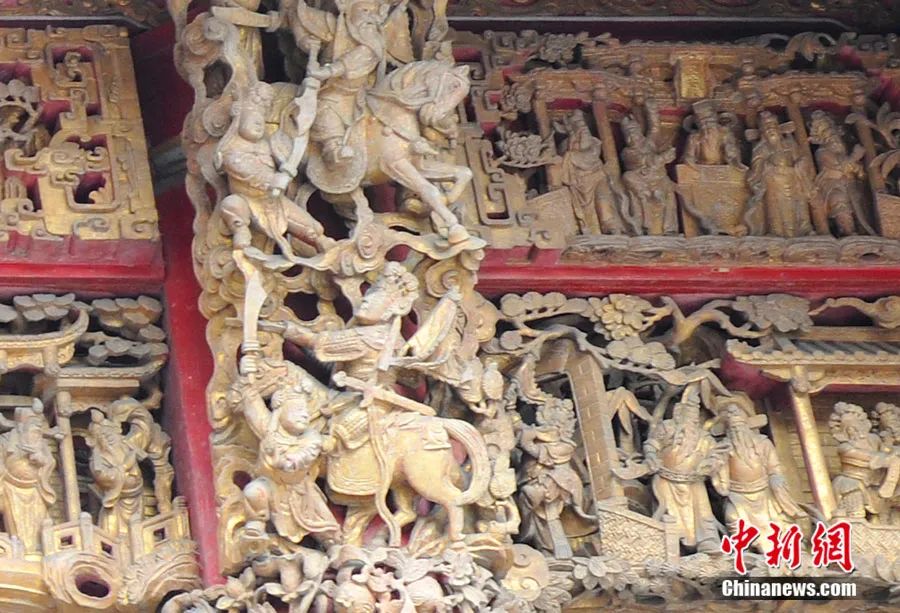 三峽祖師廟雕刻精美的木雕藝術(shù)。受訪者供圖