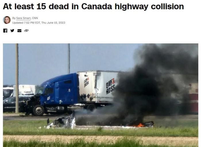 加拿大發(fā)生嚴(yán)重車禍至少15死 現(xiàn)場(chǎng)燃起大火!