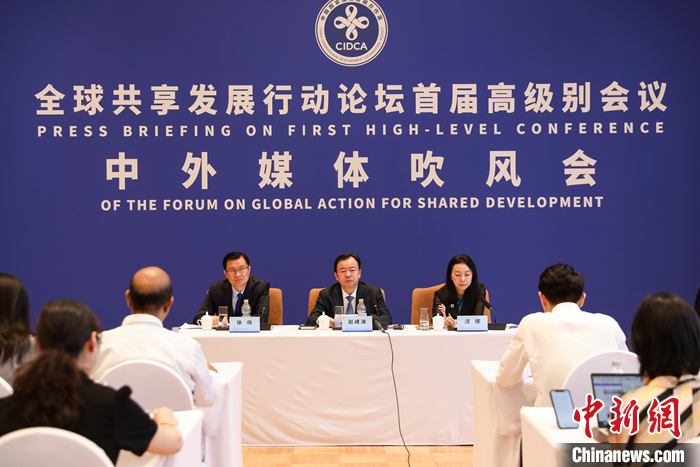 7月4日,全球共享發(fā)展行動論壇首屆高級別會議中外媒體吹風(fēng)會在北京舉行。針對有觀點認為西方國家與發(fā)展中國家看待全球發(fā)展倡議的視角不同,對全球發(fā)展倡議的評價也不同,中國國家國際發(fā)展合作署副署長趙峰濤(中)在北京回應(yīng)指出,全球發(fā)展倡議面向全球,無分南北。倡議是開放、包容的,不能用狹隘的地緣政治、冷戰(zhàn)思維、陣營對抗理念來解讀。 中新社記者 趙雋 攝