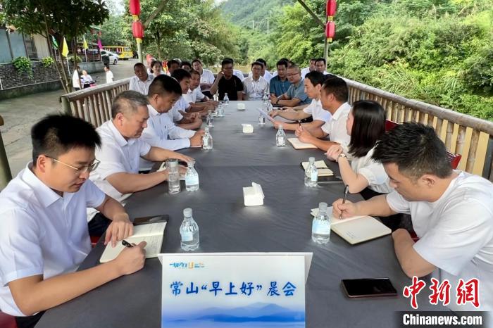 7月23日,“早上好”晨會在浙江省衢州市常山縣田蓬村召開。中新社記者董易鑫攝