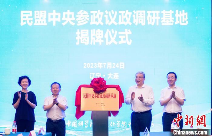 全國政協(xié)副主席、民盟中央常務(wù)副主席王光謙,遼寧省政協(xié)副主席、民盟遼寧省委會主委劉中民,中共遼寧省委統(tǒng)戰(zhàn)部副部長張佩棟,中共大連市委常委、統(tǒng)戰(zhàn)部部長徐廣湘共同為民盟中央?yún)⒄h政(遼寧大連)調(diào)研基地揭牌。