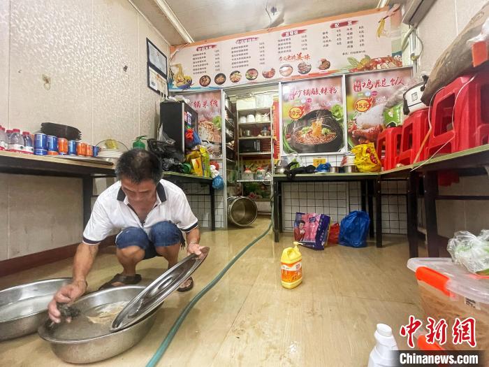 “店內(nèi)的淤泥很多,都有十幾厘米高,早上7點(diǎn)左右一直整理到現(xiàn)在(18時(shí)),全部整理完還要再進(jìn)行全面消毒。”馮先生說。