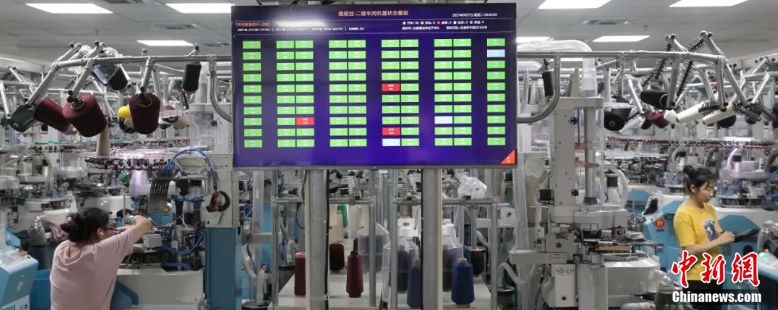以縫頭為例,在一體化襪機(jī)之前,傳統(tǒng)的手工縫頭需要人工操作,效率很低,更新為襪機(jī)后,成本降低了至少一半。而智能系統(tǒng)端,機(jī)器的效率則被更加量化地體現(xiàn)在大屏幕上,一目了然,哪臺襪機(jī)出現(xiàn)問題,車間數(shù)據(jù)顯示屏就能看到,避免生產(chǎn)出次品襪子造成浪費(fèi)。
